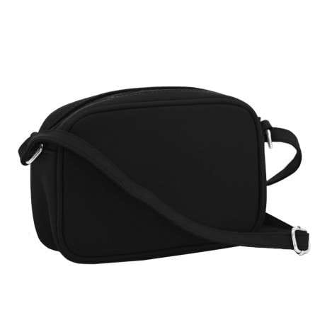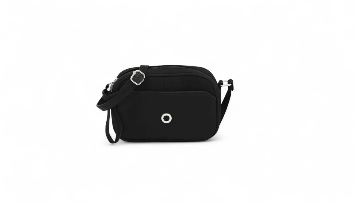 Cartera Amayra bandolera pequeña negra. bolsillo chato con imán. Tira regulable.