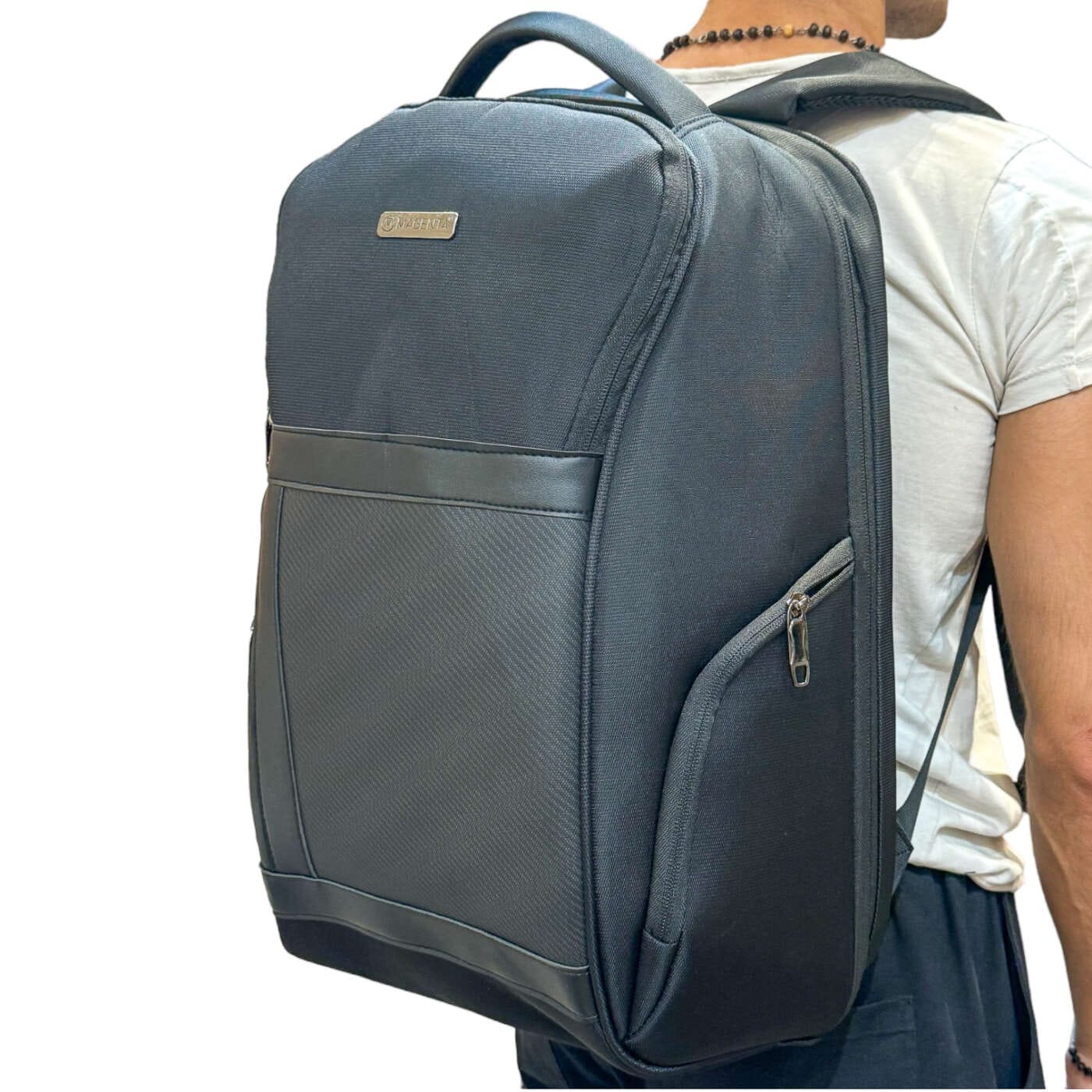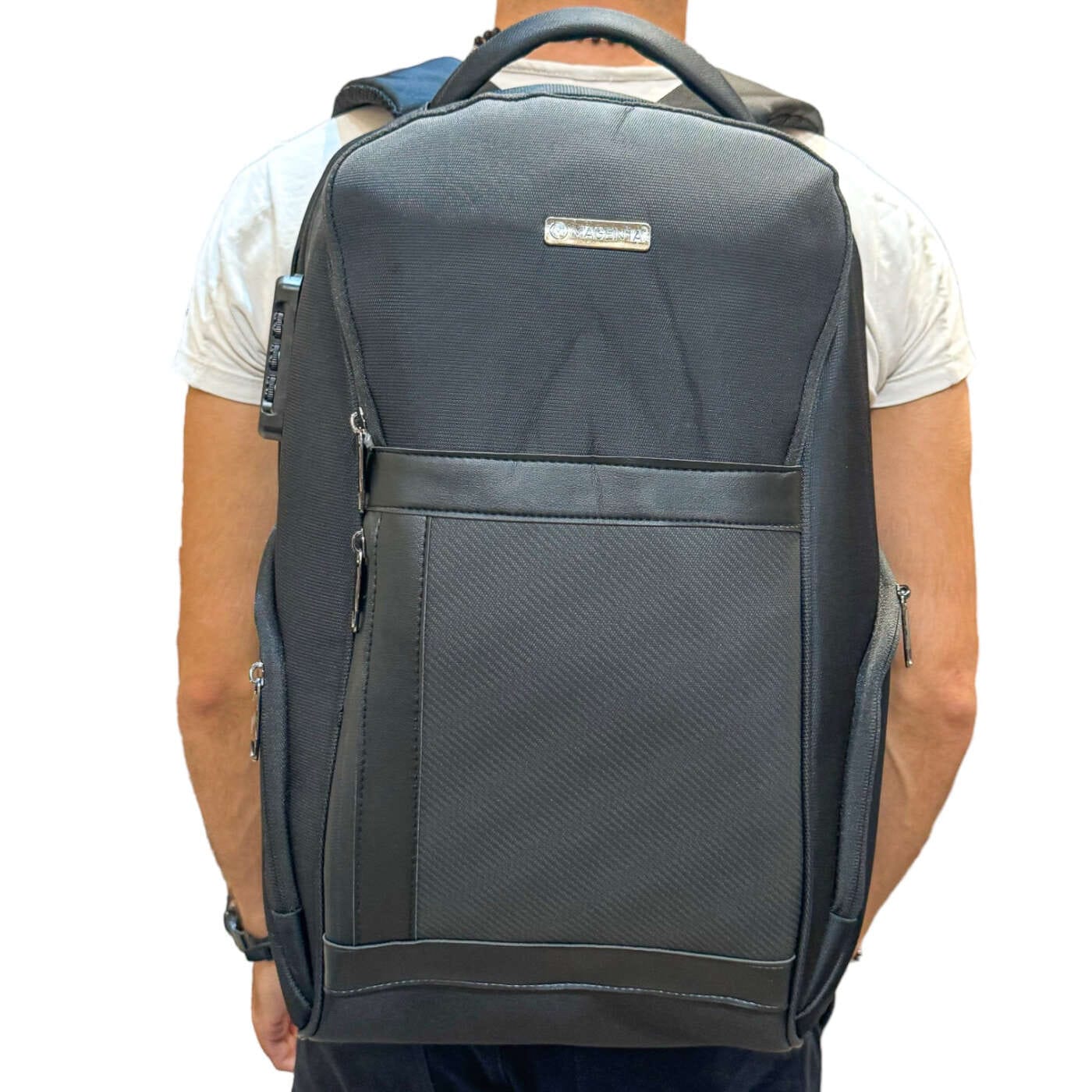 Mochila Magenta semi-rigida de 19″ con Portanotebook. Color Negro, Tiene una división principal con doble cierre reforzado de metal para el acceso, a su vez tiene incorporado un sistema de combinación para su seguridad, en el frente tiene un bolsillo amplio y otros más chico, ambos con cierre, el interior esta forrada completamente con tela, contiene una división acolchonada para la notebook con cinta con abrojo, que permite un mejor agarre. Posee Bolsillos laterales con cierre. En la parte trasera tiene un acolchonado super cómodo que esta distribuido en los puntos de apoyo más importante de la mochila, ademas tiene dos tiras anchas reforzadas, super-comodas y una manija corta para llevar en la mano.