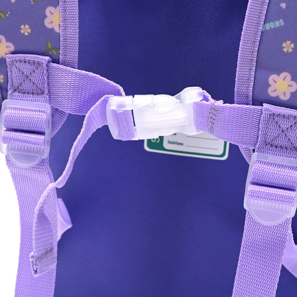 Esta mochila cuenta con una correa de pecho para un mejor ajuste y mayor comodidad, asegurando que se mantenga en su lugar mientras los niños están en movimiento. Fabricada con materiales de poliéster termoformados, proporciona una estructura reforzada que asegura durabilidad y resistencia ante el uso diario. Además, incluye un bolsillo para botellas, lo que facilita la hidratación durante el día.