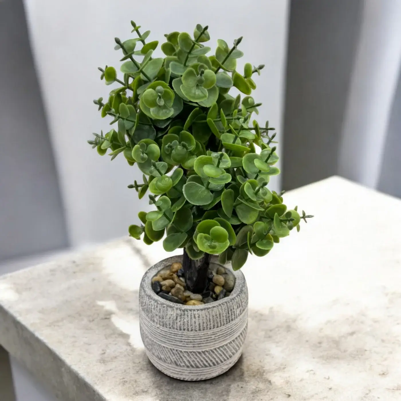 Planta artificial plástico y maceta de cemento . Gran calidad .