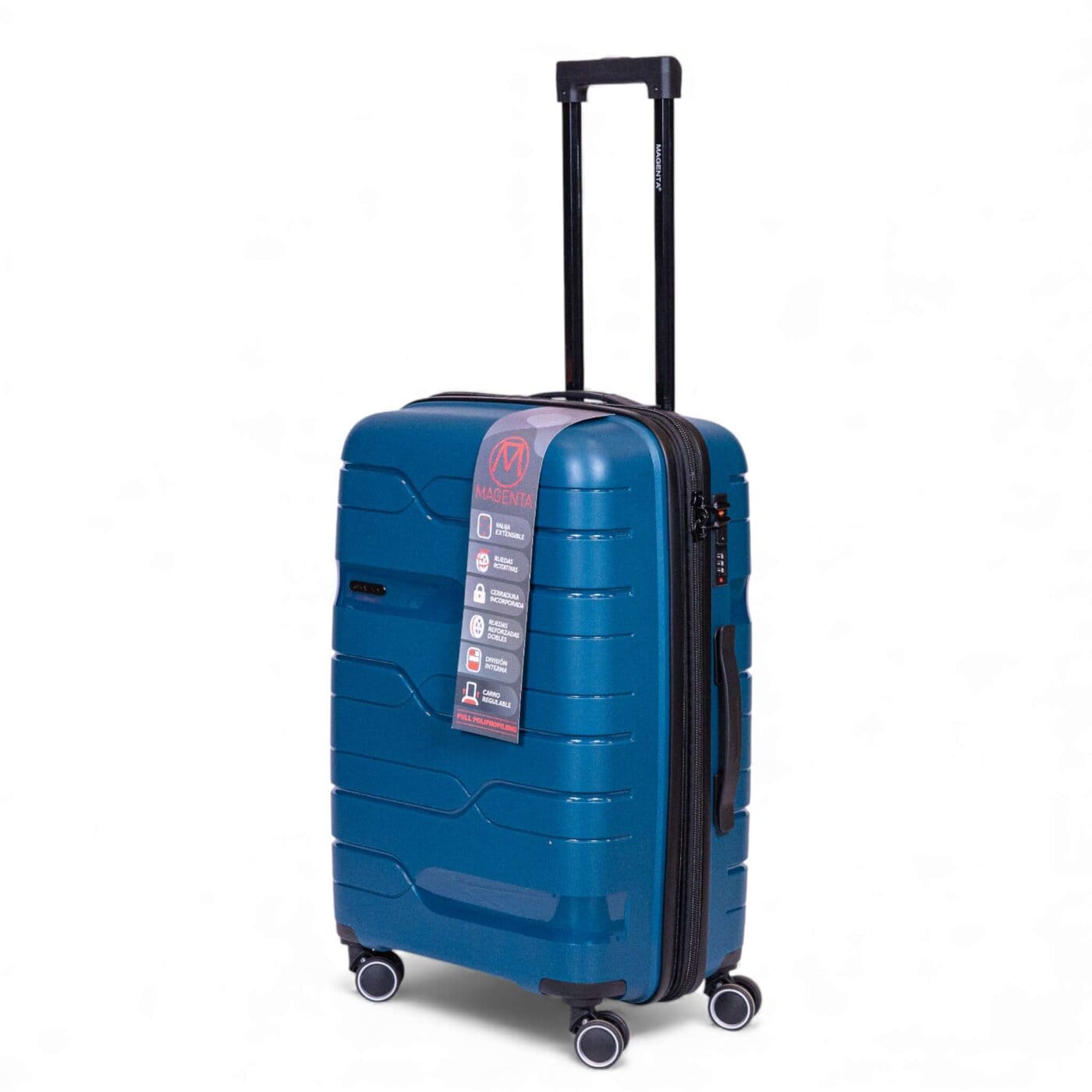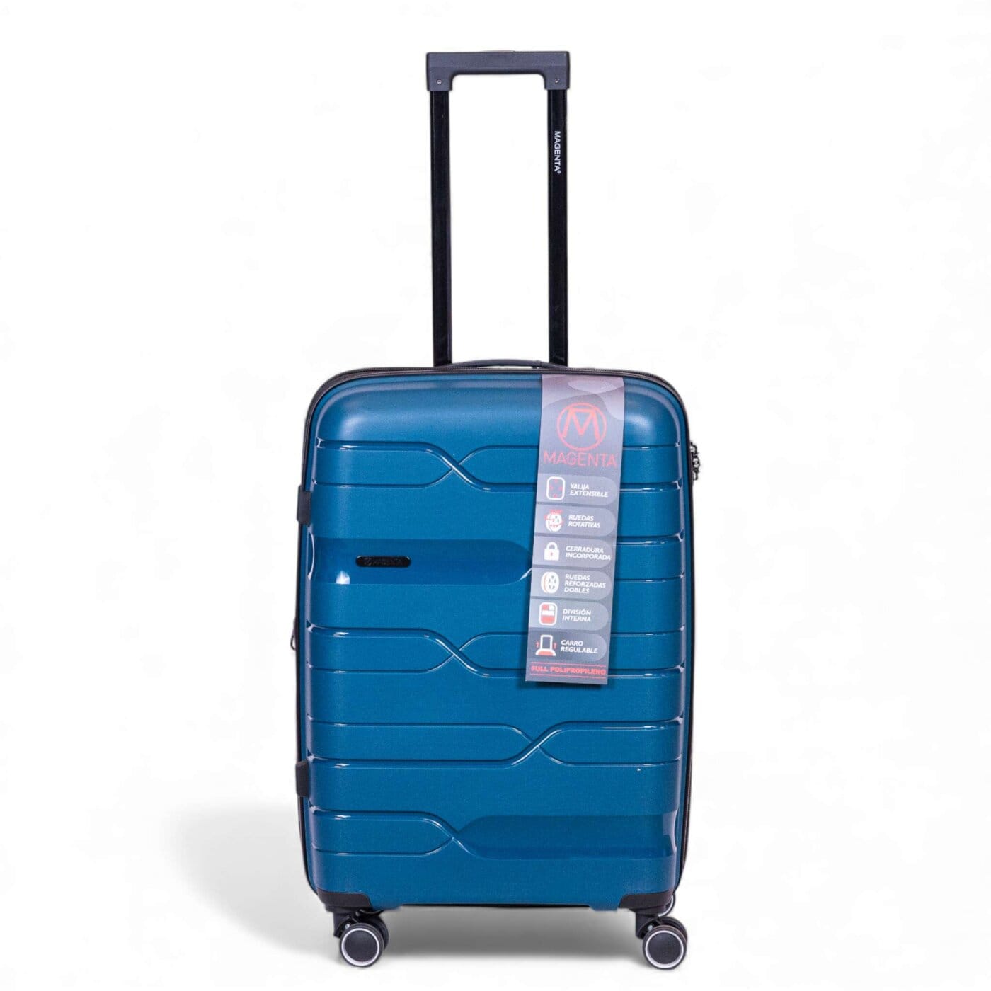 Valija Magenta mediana 24″ polipropileno súper resistente azul.